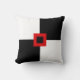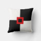Modernes rotes Quadrat auf schwarz-weißem Hintergrund Throw Kissen.