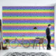 Tapete mit Schale und Knüppel, moderne Regenbogenfarben und Karos, die Tapete umkreisen. Ein tolles Gaumenprojekt für Mieter, Hausbesitzer und Innenarchitekten. Erstellen Sie ein personalisiertes Aussehen für Ihr Zuhause condo Apartment Büro oder Geschäft. Dekorierte Kerzenhalter Untersetzer Möbel Küche Backspritzer Türverkleidungen Kopfbrett Lagerbehälter Container.