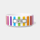 Moderne Regenbogenstreifen personalisierte Haustierschüssel. Leckerei dein besonderes Haustier mit seiner eigenen personalisierten Regenbogenfarben gestreiften gemusterten Haustierschüssel. Sie können die Hintergrundfarbe und das Namensschild mit einer Farbe Ihrer Wahl anpassen. Entwickelt von Thisisnotme©