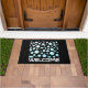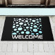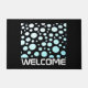 Dieses moderne Retro-Welcome-Türmatte zeichnet sich durch farbenfrohe, weiße bis blaue Kreise auf schwarzem Hintergrund aus, die nach oben blicken und die Andeutungen eines schönen blauen Himmels einfangen. Ideal für Spaß Funky Willkommen. Dieses Bild ist eine Originalfotografie von JLW_FOTOGRAFIE.