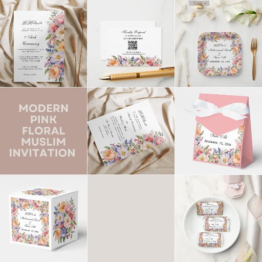 Moderne rosa Blumendetails muslimische Einladung