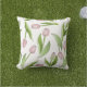 Das Produktdesign zeichnet sich durch ein Muster aus pinkfarbenen Tulpenfarben aus. Diese originelle botanische Abbildung macht ein modernes, elegantes und einzigartiges quadratisches Kissen im Freien - Geburtstag, Ostern, Muttertag oder Hochzeitsgeschenk.