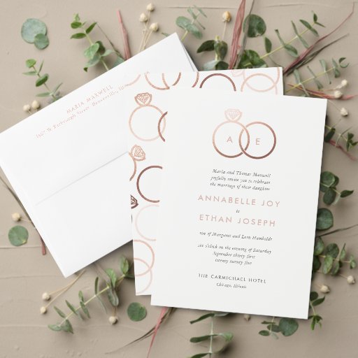 Moderne Rose Gold Rings Wedeln Online RSVP Card