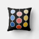 Moderne, schöne, rot-blaue gelbe Farbtöne in hängenden Kreisen Dekoration auf schwarzem Hintergrund Throw Kissen.