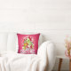 Ein Kissen mit einem hellen und festlichen Weihnachtsbild. Der Text sagt frohe Weihnachten und Glück im neuen Jahr. Entworfen mit einem baumförmigen Hügel mit festlichen Schneeflocken, Sternen, Weihnachtsbaumbläsern und glänzend aussehenden Glitzern. Auch die Kiefernnadeln und die baumförmige Abbildung sind in diesem Urlaubsbild enthalten. Der Hintergrund ist eine lebendige rötlich-rosa Farbe.