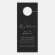 Fügen Sie diese schicken personalisiert nicht stören Hochzeitstürhänger zu Ihrem Hochzeitshotel Begrüßungstaschen! Der doppelseitige Hänger der Hochzeitstür bietet eine persönliche Begrüßungsbotschaft auf der anderen Seite, die die Botschaft auf der Vorderseite nicht stört. Das Design verfügt über ein elegantes weißes Kalligraphieskript mit schwarzem Hintergrund. Personalisieren Sie den modernen Hangar mit Ihren Namen, Hochzeitsdatum, persönliche Nachricht, etc. Entworfen, um mit unserer modernen Elegance Schwarz-Weiß Hochzeitskollektion zu koordinieren.