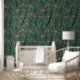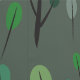 Moderne stilisierte Grünbäume mit schwarzen Stämme Tapete