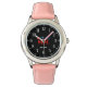 Kinderuhr aus Edelstahl mit rosa Lederarmband