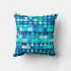 Kissen mit quadratischen Linien, in geometrischen Formen gemustert, in einem modernen, Stammesmuster, in Denim-Blau-Farbtönen, von blasser Chambray / Aqua bis tiefer Indigo / Kobalt-Blau, mit weißem Akzent, auf einem marinen Hintergrund
