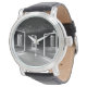 Uhr, Vintage Männeruhr mit schwarzem Lederarmband
