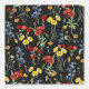 Hübsche künstlerische, Vintage botanische Illustrationen von Wildblumen in Rot, Blau und Gelb: Mohn, Molchen, Bluebells, die zu einem Muster auf dunkelgrauem Holzkohle- oder Kohlenstoffschwarz-Hintergrund für Naturliebhaber und Blume gemacht wurden, und ein romantisches Soul
