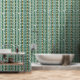 Mit diesem markanten geometrischen Muster, das aus waldgrünen vertikalen Streifen mit Bio Formen und goldgelben Akzenten besteht, können Sie Ihren Raum vergrößern. Dieses raffinierte Design verbindet moderne Ästhetik mit zeitgenössischem Minimalismus und schafft ein mutiges und dennoch harmonisches Muster, das sich perfekt für die Wohngestaltung eignet. Die kunstvolle Mischung aus smaragdgrün, braun und Senfgelb bietet eine von der Natur inspirierte Farbpalette, die in der modernen Innenausstattung wunderbar funktioniert. Ideal für Tapeten, Stoffmuster oder Kunstdrucke, die eine Aussage machen und gleichzeitig Eleganz bewahren.