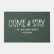 Eine moderne rustikale Türmatte, die Sie wirklich willkommen heißt. Ein großartiges Geschenk für Neuvermählte oder neue Hausbesitzer, unser Brauch kommt und bleibe Türmatte in elegantem Waldgrün und Weiß mit "Komm und Bleibe" in modernem, rustikalem handgeschriebenem Schriftart. Personalisieren Sie Ihren Familiennamen in klassischen weißen Schriften. Entworfen für Sie von BlackBerry Boulevard.