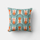 Dieses Kissen hat ein modernes Design von aquamarinen Wellen und orangefarbenen Kreisen.