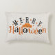 Dieses lustige und stilvolle Halloween-Kissen besticht durch die Worte "Merry Halloween" in festlichen Schwarz- und Orangetönen auf einem Imitat-Leinenuntergrund.