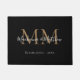 Moderne elegante schwarze Gold neu verheiratete Monogram Name Initial Script Doormat. Personalisieren Sie Ihre Monogrammnamen, -initialen und -datum. Perfekte Wohngestaltung Geschenkidee für Neuvermählte.