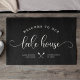 Moderne, schicke Pinselskripte, die unser Haus am Ufer des Sees in einem trendigen, typografisch gestalteten Design willkommen heißen. Großzügige Einrichtung des Seehauses für Ihre Zuhause weg von der Zuhause. Unsere schwarze Türmatte ist sowohl romantisch als auch stilvoll und bietet eine süße Kanuillustrierung zwischen Ihrem Standort und dem etablierten Jahr.