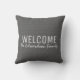 Modernes rustikales dunkelgraues Imitatleinwand Willkommens-Familienmonogramm-Namenkissen.