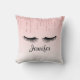 Ein modernes, trendiges (Imitat) glänzendes Design auf einem Kissen. Für diejenigen, die ein Gefühl von Klasse und Eleganz vermitteln wollen. Entworfen mit einem Hintergrund, der ein Bild von glitzernden, rosa, tropfenden (Imitate) Glitzer an der Spitze hat. Die Erholung des Hintergrunds ist ein zarter pastellrosa Farbverlauf. Eine Abbildung eines Paares schwarzer Wimpern komplettiert das Design.
