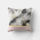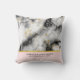 Ein Hochzeitskissen mit elegantem und modernem Marmormuster. Weißer, schwarzer und rauchiger grauer Marmor mit dünnen Bändern von Imitat-Gold-Wirbel im ganzen Muster. Ein hellrosa Farbverlauf unter dem marmorierten Muster.