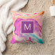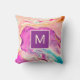 Modernes Abstrakt rosa Kunstschwirl Monogramm Kissen
