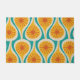 Mitte des Jahrhunderts moderne Atomtropfen Retro-Muster türkis blau gelben Orange. Spaß im Zeitalter des Weltraums; 1950er 1960er Jahre Mitte Mod modernistische Vintage Ästhetik. Aquamarin und Senftöne. Lebhaft und fröhlich. Von Kierkegaard Design Studio.