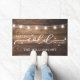 Modernes Bauernhaus Rustic Family Monogram Doormat - verfügt über eine prächtige Schriftzeichen-Typografie auf einem rustikalen Holzhintergrund mit Stern- und Schneeballleuchten, die an der Decke hängen. Doormat ist mit Ihrem Familiennamen personalisiert. Ideal für den Urlaub und bis in die Wintermonate. Macht ein sehr nachdenkliches Geschenk.