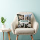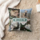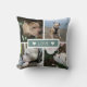 Modernes Beileid mit 4 Fotos in einem Gitter mit mittlerer Textvorlage in staubiger grüner Box "Liebe" mit Herz und persönliche Nachricht auf der Rückseite werfen Kissen.
