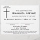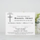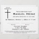 Moderne, minimalistisch schwarz-weiße Baby Widmungszertifikate mit einem einfachen schwarzen Kreuz mit dem Namen Ihres Sohnes/Ihrer Tochter - begleitet von Ihren Zeremonie Details.