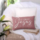 Modernes, elegantes Drehbuch aber First Jesus Dusty Pink Lumbar Kissen - Minimalistisches, staubiges, mädchenfarbenes Design mit Aber First Jesus Wort Kunst.