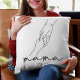 Niedliches Wurfkissen für Mütter mit einer Linie, die von einem Kind zeichne, das die Hand der Mütter hält, der Titel "MAMA" in einem modernen Drehbuch-Schriftart, und im Jahr, in dem sie Eltern wurde.