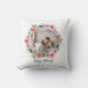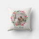 Feiern Sie die Saison mit einem personalisierten Weihnachtskissen mit Ihrem Foto gerahmt von einem nordischen festlichen Kranz von Poinsettias, Heilige Beeren, Glocken, Goldschneeflocke und Kiefernästen. Fügen Sie Ihren Familiennamen oder Ihren Gruß hinzu, um es einzigartig zu machen. Ein gedankenvoller Urlaubssake oder dekorativer Akzent, der jedem Raum Wärme bringt.
