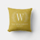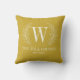 Ein modernes, monogramm gelbes Kissen mit Lorbeerkissen mit Blätter. Fügt Ihrer Wohngestaltung eine elegante Touch hinzu. Personalisieren Sie es mit Ihrem Anfangs-, Namen- und Hochzeitsdatum. Entworfen für Sie von BlackBerry Boulevard.