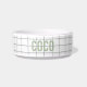 Elegante und moderne Schüssel mit geometrischem Rastermuster in grün Anpassbar mit dem Namen der Haustiere zu machen, dieses Begleiter Schüssel Geschenk ein niedliches Accessoire. Ideal, nachdenklich Geschenk für den Haustierbesitzer in Ihrem Leben. Passende Halsbänder, Wimpern und Heimtierbetten sind in gleicher und koordinierender Farbe erhältlich.
