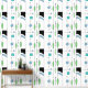Grosses, abstraktes geomterisches Muster aus der Mitte des Jahrhunderts in einem frischen und sauberen Design, das die Blätter von Weiden andeutet,... Linien in Schwarz und Weiß mit Blau, Grün, Aqua aquamarin.