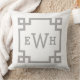 Das stilvolle und moderne Kissendesign mit quadratischem Akzent zeichnet sich durch ein griechisches geometrisches Rahmendesign und ein personalisiertes Monogramm aus. Neutrale Zinnfarbe grau-weiß. Die Hintergrundfarbe kann geändert werden.