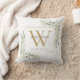 Elegante Aquarellgrün Monogramm-Wurfkissen mit einem Monogramm-Gold-Initial. Entwickelt von Thisisnotme©