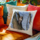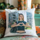 Schaffen Sie sich Ihr eigenes Foto werfen Kissen. Das Foto bedeckt die quadratische Form eines Pinselstrichs. Fügen Sie Text hinzu, um ein personalisiertes Geschenk zu erstellen.