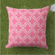 Stilvolles Kissen mit modernem marokkanischem Vierblattmuster in Weiß. Pink, hell und rosa, um sich mit der Außendekoration abzustimmen.