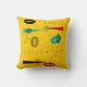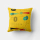 Modernes Kissen aus dem Mittelalter, abstraktes Design in Schwarz, Rot, aquamarin und Grau auf einem hellen goldenen Hintergrund. Ideal für alle modernen Dekorationen der Mitte des Jahrhunderts.