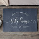 Modernes Lake House Familienname Brush Script blau Fußmatte