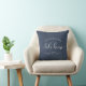 Modernes Lake House Familienname Brush Script blau Kissen