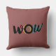 Modernes, spielerisches, kühn grafisches Design eines Wortes "wow" in rot, gelb, blau. Handgeschriebene, lustige, lebendige Pinselstrichtypografie.