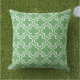 Stilvolles Kissen mit modernem marokkanischem Vierblattmuster in Weiß. Passen Sie den grünen Hintergrund an, um sich mit Ihrer Außendekoration abzustimmen.