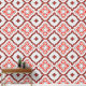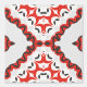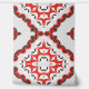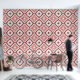 Diese Wandtafel mit Schale und Stange zeichnet sich durch ein fesselndes und kühn gestaltetes Design aus. Die Tapete zeigt ein sich wiederholendes geometrisches Motiv. Es besteht aus Diamanten- und Qua-Trefolienformen, die kompakt angeordnet sind. Jeder Diamant umschließt eine Qua-Trefolie, die wiederum in ihrer Mitte ein kleineres Diamantenmuster enthält. Die Gesamtwirkung ist visuell faszinierend. Die vorherrschenden Farben sind rot, weiß und schwarz. Diese Farbtöne schaffen einen auffallenden Kontrast und rufen ein Gefühl von Lebendigkeit hervor. Der Stil zeichne die Inspiration der traditionellen marokkanischen Kunst, die symmetrische Geometrie und die rhythmische Wiederholung erinnern an marokkanische Fliesendesigns.