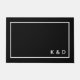 Das moderne Minimal Couple Monogram Doormat ist ein Must-Have Accessoire, um eine Touch zeitgenössischer Eleganz in Ihren Zuhause Eingang hinzuzufügen. Diese personalisierte Türmatte verbindet minimalistisches Design mit Ihren individuellen Monogrammen und macht sie zum perfekten Geschenk für ein Paar oder eine stilvolle Ergänzung zu Ihrem eigenen Wohnsitz. Dies ist die schwarz-weiße Version.
