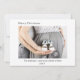 Eine Foto-Urlaubskarte und eine Schwangerschaftsankündigung. Minimalistisch und elegant. Grauer Text. Personalisieren und fügen Sie Ihr eigenes Foto, Name und Jahr. Zurück: weißer Hintergrund. Platz, an dem du mit der Hand schreiben kannst.