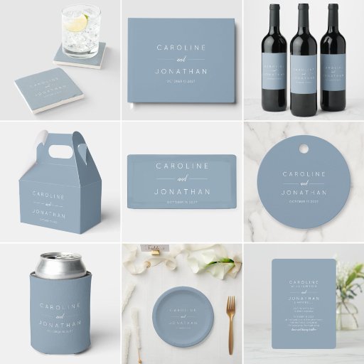 Modern Minimalist Script Wedding - Dusty BlueDesignt von Opal Ellery