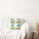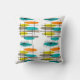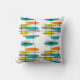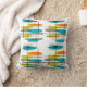 Retro Inspiriert Kissen Design, Mitte Jahrhundert II Stil Handgezeichnet von Künstler. Aquamarines blaues, orangefarbenes und gelbes Muster auf weißem Hintergrund.