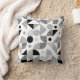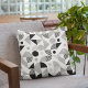 Dieses moderne Kissen mit monochromen, nahtlosen geometrischen Mustern mit verschiedenen Linien und Formen in Schwarz-Grautönen auf weißem Hintergrund.